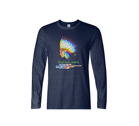 Our newest release.  Chief Rain Maker brings it with his warrior spirit and 50 BMG! This Long sleeve T shouts a war cry like no other. 100% Cotton